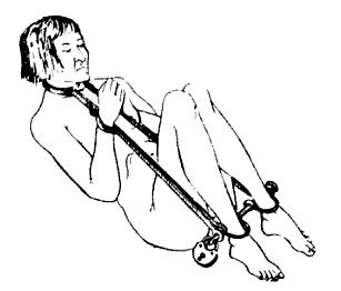 Aunque a primera vista parezca únicamente otro método de inmovilización o de constricción, no más temible que millares de artilugios más o menos similares, la «cigüeña» provoca en la victima, a menudo ya a los poco minutos, fuertes calambres; primero en los músculos abdominales y rectales, y luego en los pectorales, cervicales y en las extremidades; calambres que co el paso de las horas conducen a una única, continua y atroz agonía sobre todo, parece ser, en el abdomen y recto. En tal situación la victima puede ser golpeada, pateada, quemada y mutilada a placer.