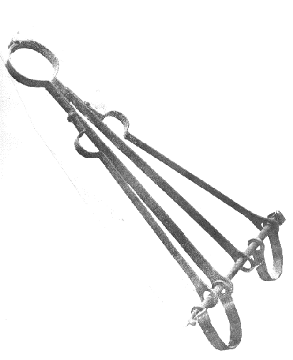 Un ejemplar en la Torre de Londres casi idéntico al aqui presente, se conoce como la «Scavenger’s daughter» —la hija del basurero— término cuyo origen se desconoce. La palabra italiana Cicogna, «Cigüeña», usada para describir este instrumento, es citada por Muratori, quien la atribuye a archivos judiciales venecianos e inquisitoriales romanos y milaneses del periodo 1550-1650.