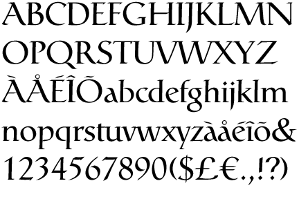 También llamadas glíficas o incisas, son aquellas tipografías evocadoras de las grabadas en la piedra pueden tener serifs o simplemente un pequeño aumento del grosor al final de los trazos.