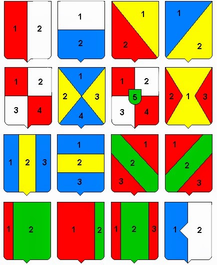 De todos los casos normales que se nos pueden presentar hay unas normas generales para representar el orden dentro de un escudo:
