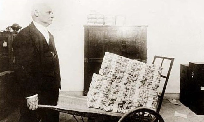 La gran inflación que sufrió Alemania después de la Primera Guerra Mundial constituyó uno de los elementos más significativos del siglo XX y fue uno de los factores principales, sino el más fundamental para llevar a Adolf Hitler al poder. La moneda en circulación registró un aumento de 6 billones de marcos en 1913 a 92.000.000.000.000.000 en noviembre de 1923. Fue tan grave la inflación que, como explica William Guttman, una taza pasaba a valer de 5000 a 8000 marcos mientras la bebía o unos zapatos que en 1913 costaban 12 marcos, se vendían en 1923 a 32 billones de marcos.