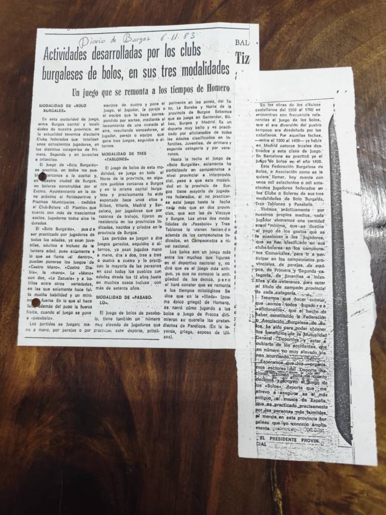 Actividades desarrolladas por los clubs burgaleses de bolos, en sus tres modalidades – Un juego que se remonta a los tiempos de Homero: